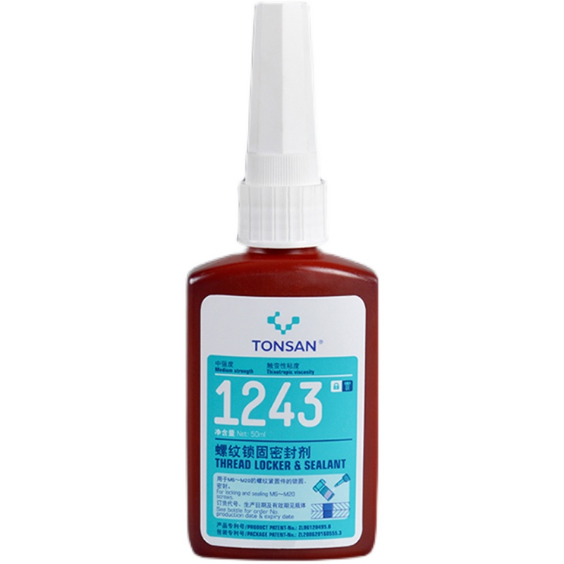 天山可赛新1243中高强度,触变性粘度,可在轻油表面使用,用于M6~M20的螺纹紧固件的锁固、密封,可用普通工具拆卸。